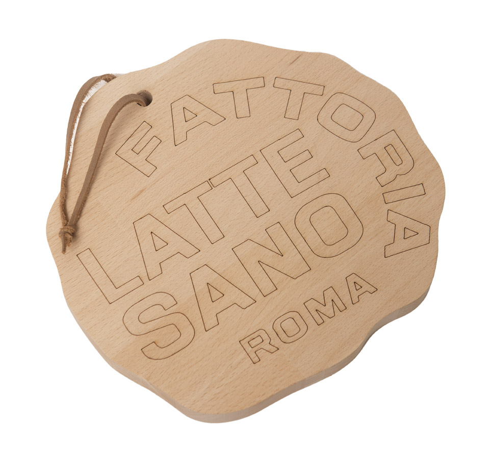 Tagliere in faggio sagomato con incisione laser, foro e laccetto in cuoio. Made in Italy.