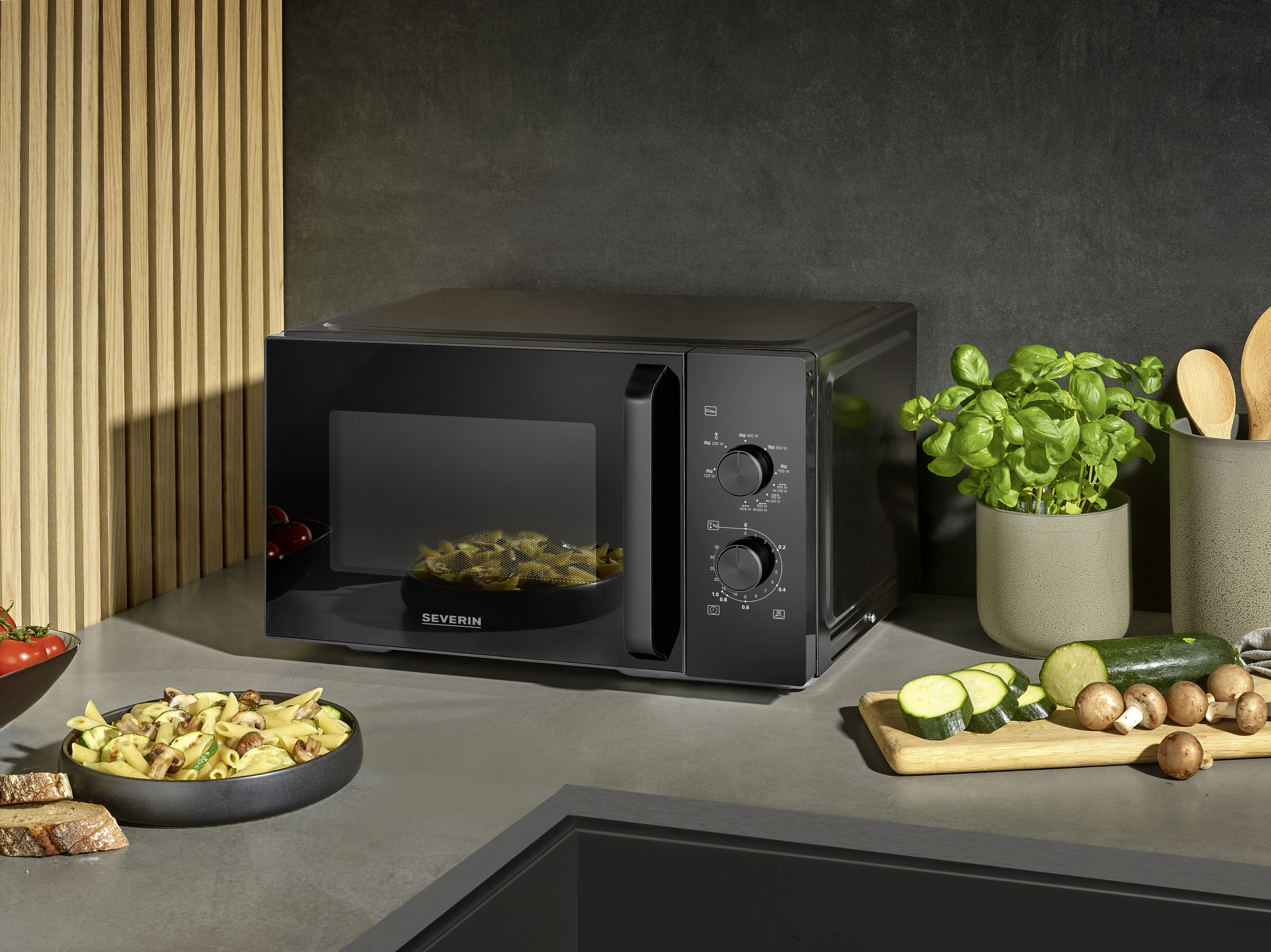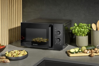 Microonde combinato con funzione grill e spegnimento automatico. Interno laccato, resistente al calore e facile da pulire. Incude piatto girevole rimovibile e griglia.
