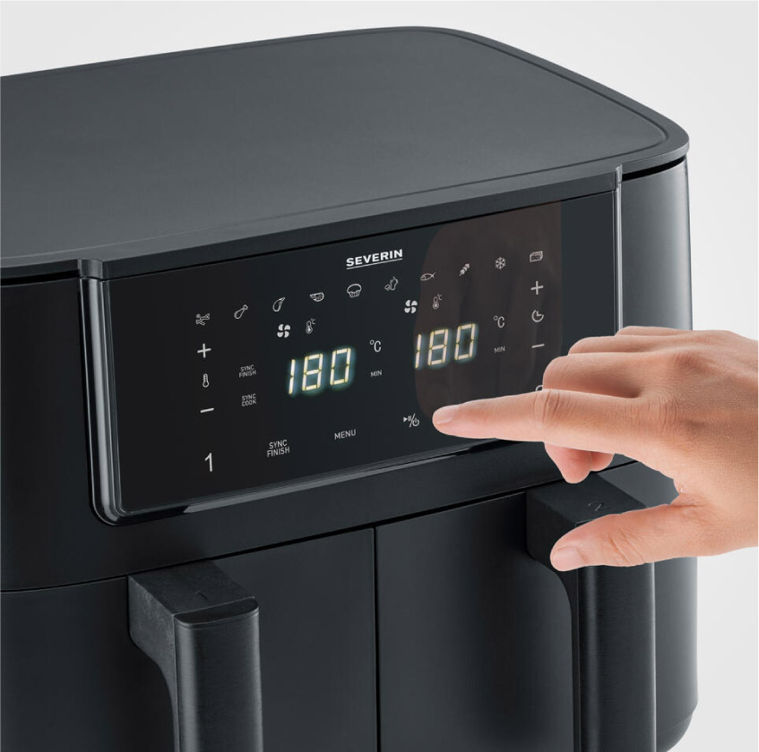 Per preparazioni versatili, sane e veloci senza l’aggiunta di olio e grassi, grazie alla tecnologia ad aria calda a 360°. Con 2 cestelli per preparare diverse pietanze contemporaneamente e comoda funzione di mantenimento in caldo.