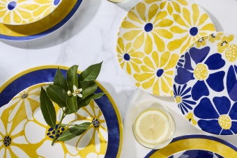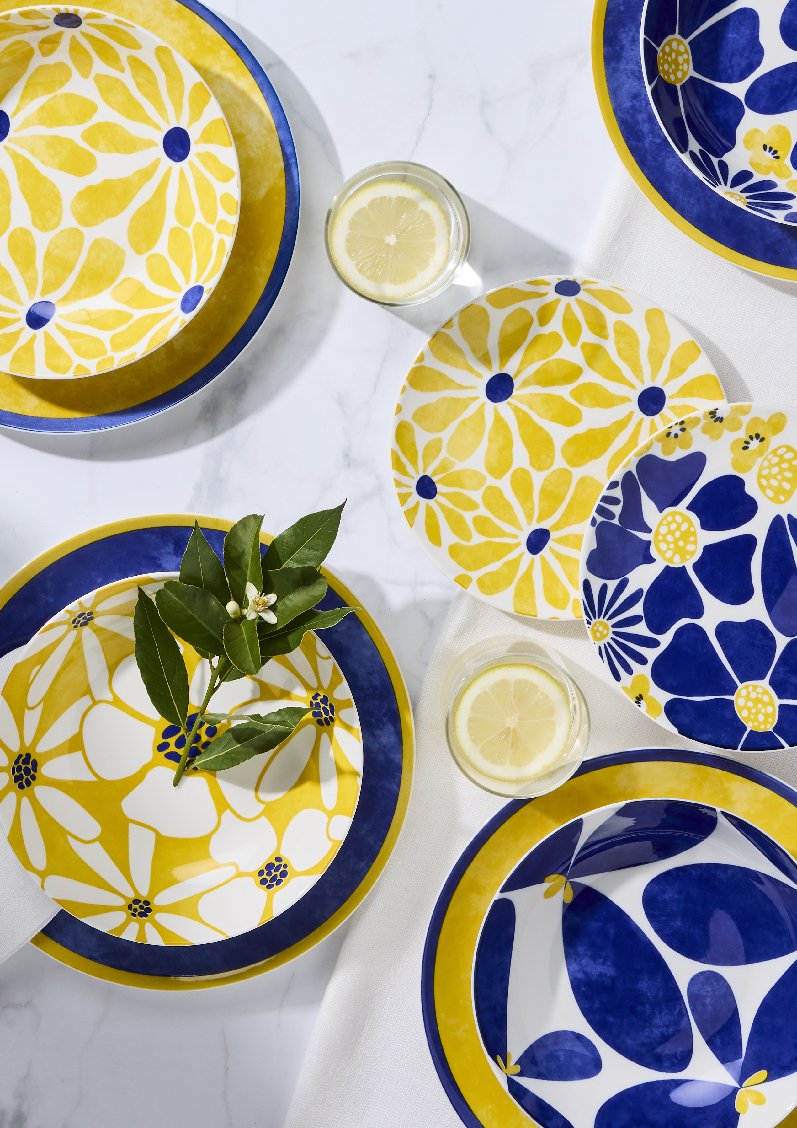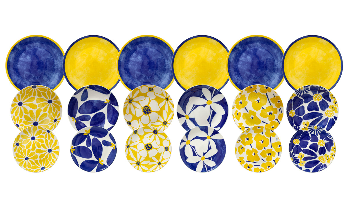 Servizio piatti da 18 pezzi in porcellana impreziosito da decori vivaci e delicate armonie.