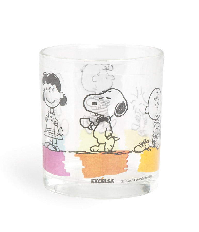 Servizio bicchieri da acqua 3 pezzi in vetro multicolore con grafica Peanuts.