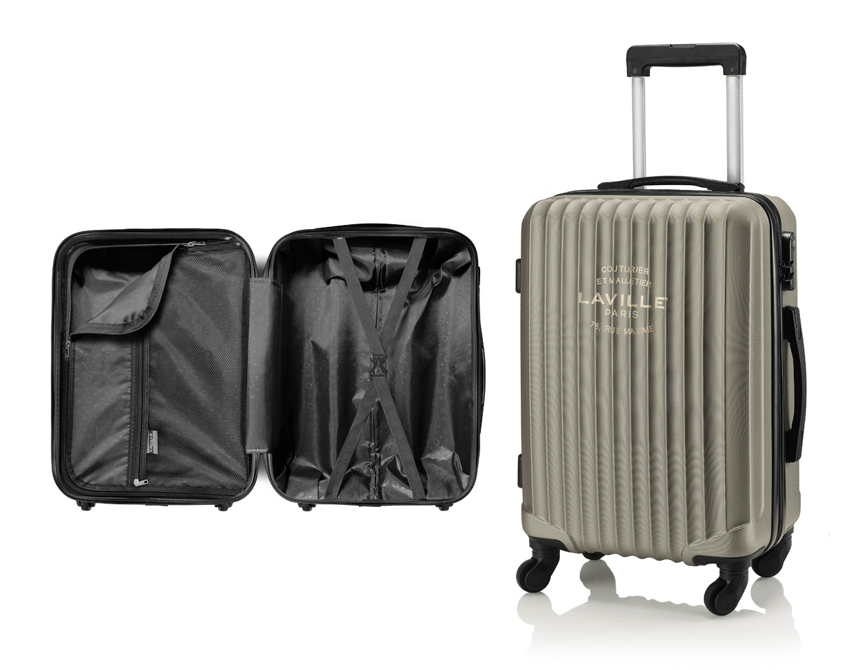 Trolley cabina 20” in ABS ultraleggero e resistente con 4 ruote multidirezionali, chiusura di sicurezza a combinazione a 3 cifre, carrello regolabile a scomparsa in metallo e doppia maniglia laterale e dall’alto. Interno foderato con 2 scomparti separati e una tasca porta oggetti in rete con chiusura a zip.