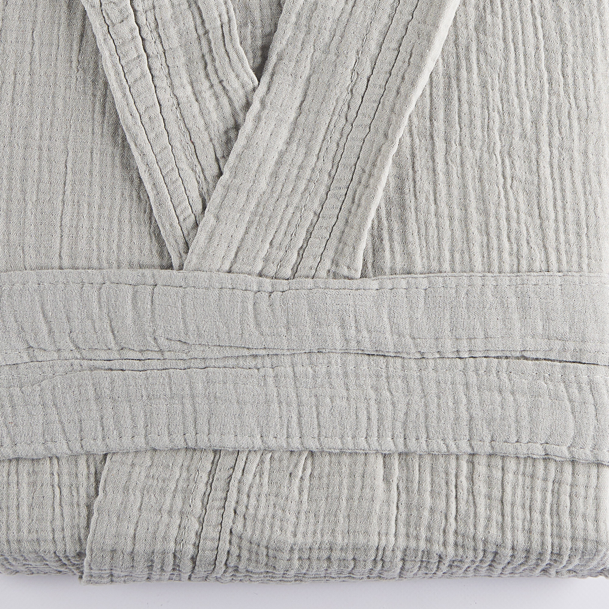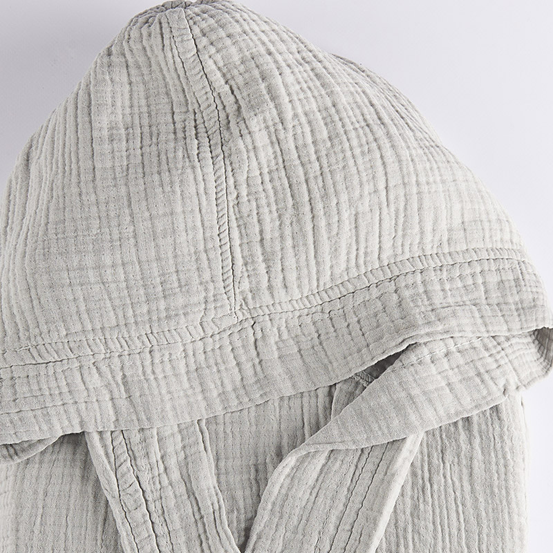 Accappatoio 100% cotone con lavorazione in leggerissima mussola di alta qualità. Extra assorbente, morbido, leggero e traspirante.