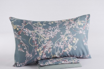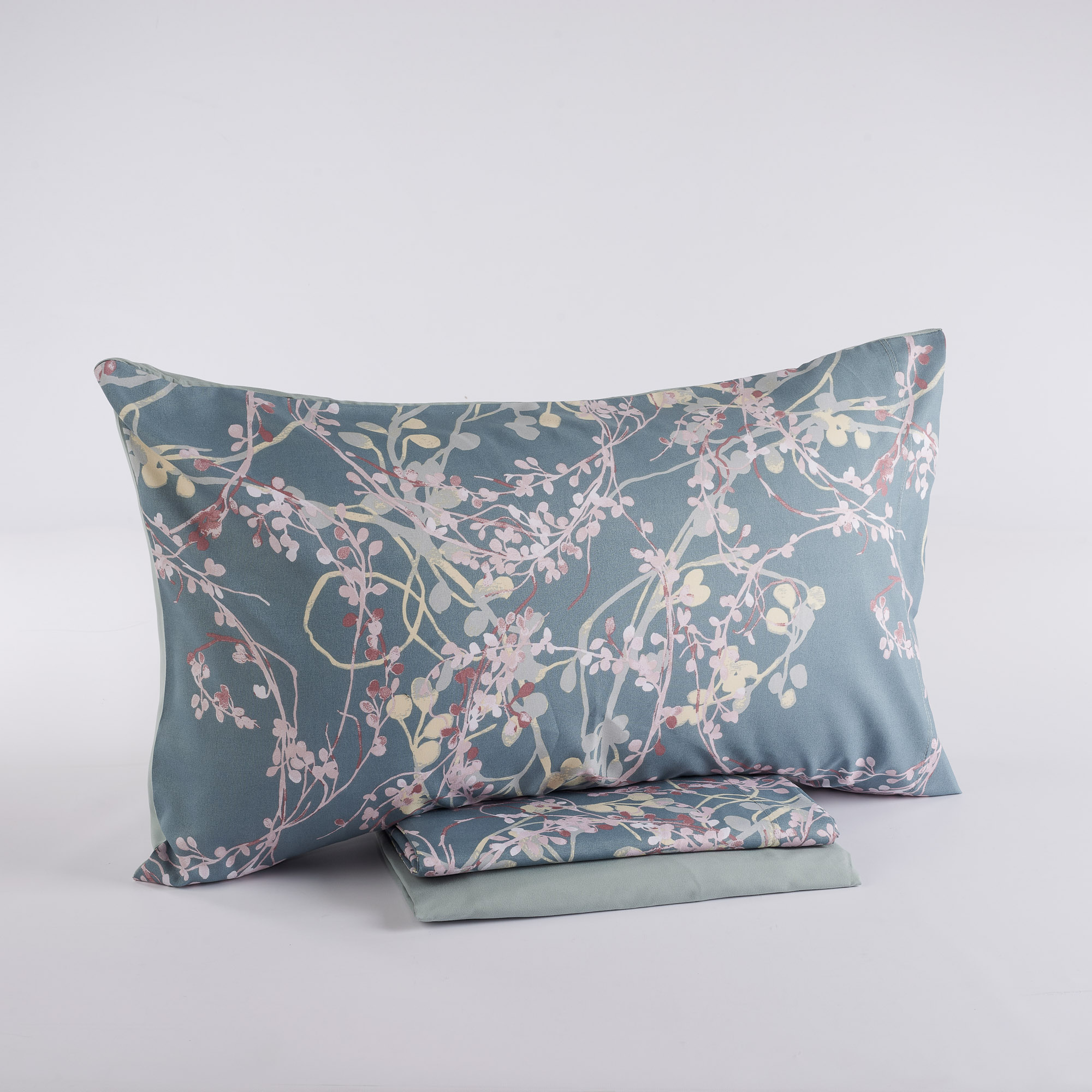Completo letto in microtela con stampa floreale e base color salvia, in pratico tessuto no stiro.